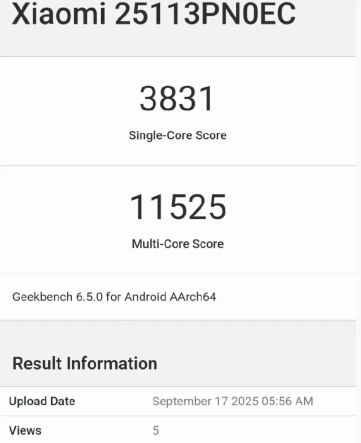 小米17 Pro Max:单核 3831,多核 11525