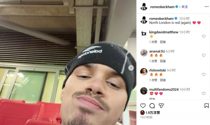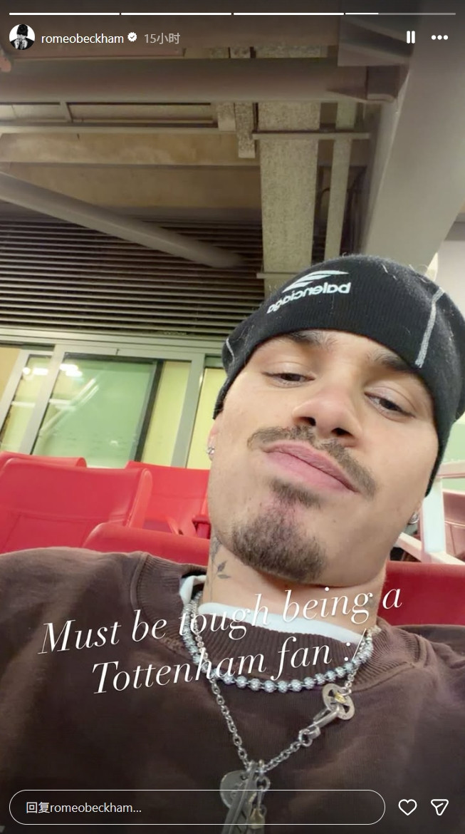 直播吧11月24日讯贝克汉姆的次子罗密欧·贝克汉姆在社交媒体上连发多条动态,庆祝阿森纳在北伦敦德比中大胜,还不忘嘲讽热刺。