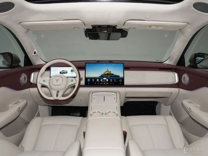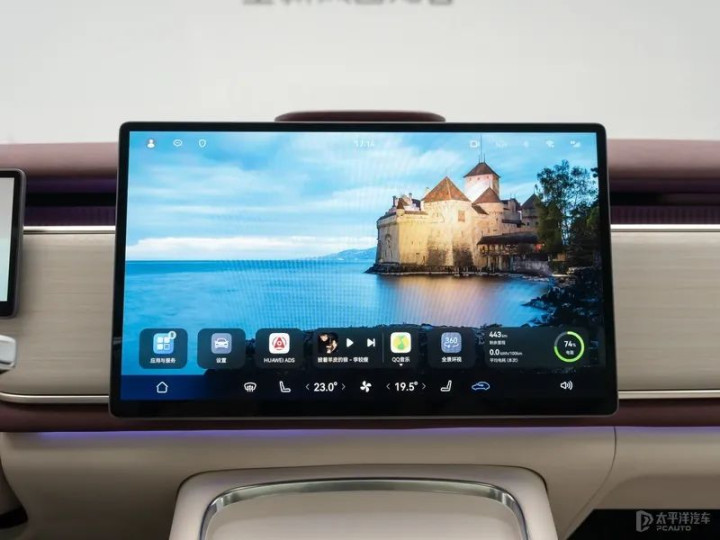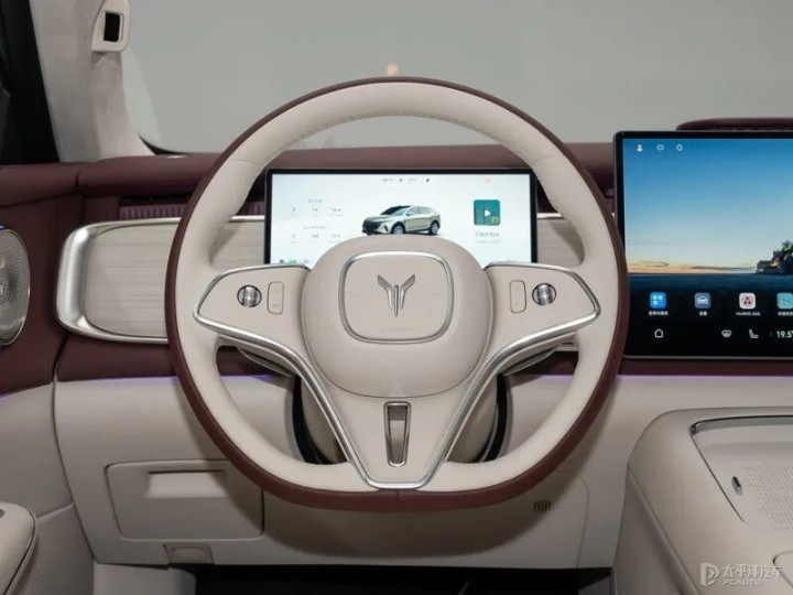 2、座舱系统:首次搭载华为鸿蒙座舱5智能技术,配备有AR-HUD抬头显示,可扩展副驾驶娱乐屏及后排娱乐屏;